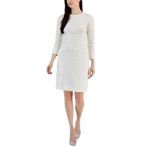 Anne Klein Women's 3/4 SLV BOATNK HEATSET Dress, Ivory, XL