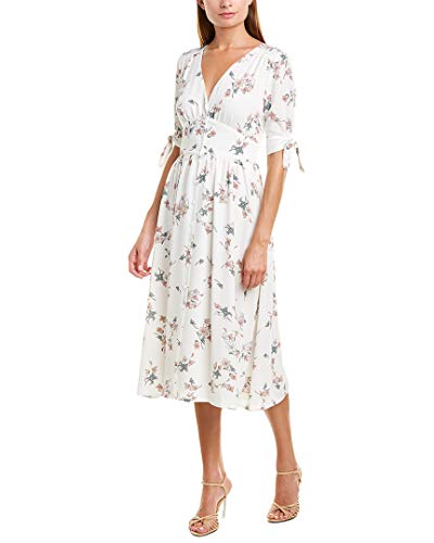 Pretty tie-detail sleeves frame the sweet look of this floral-print midi dress, featuring button closures and a flattering banded waist, from 1.STATE.