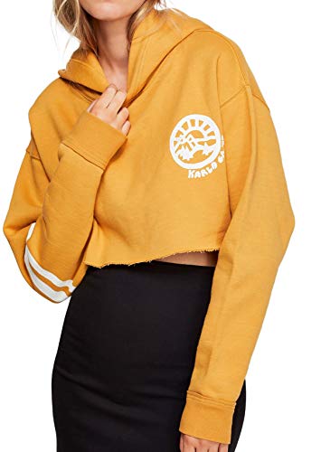 Free People Baldwin Cropped Graphic Hoodie, Small, Light Yellow