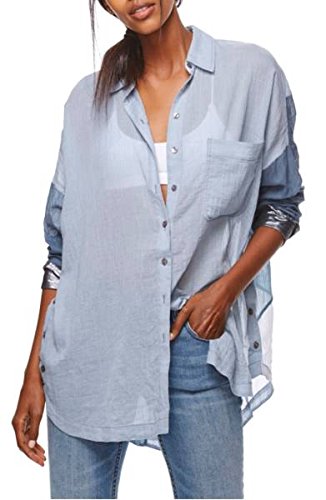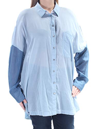 Free People Womens Colorblock Long Sleeves Button-Down Top