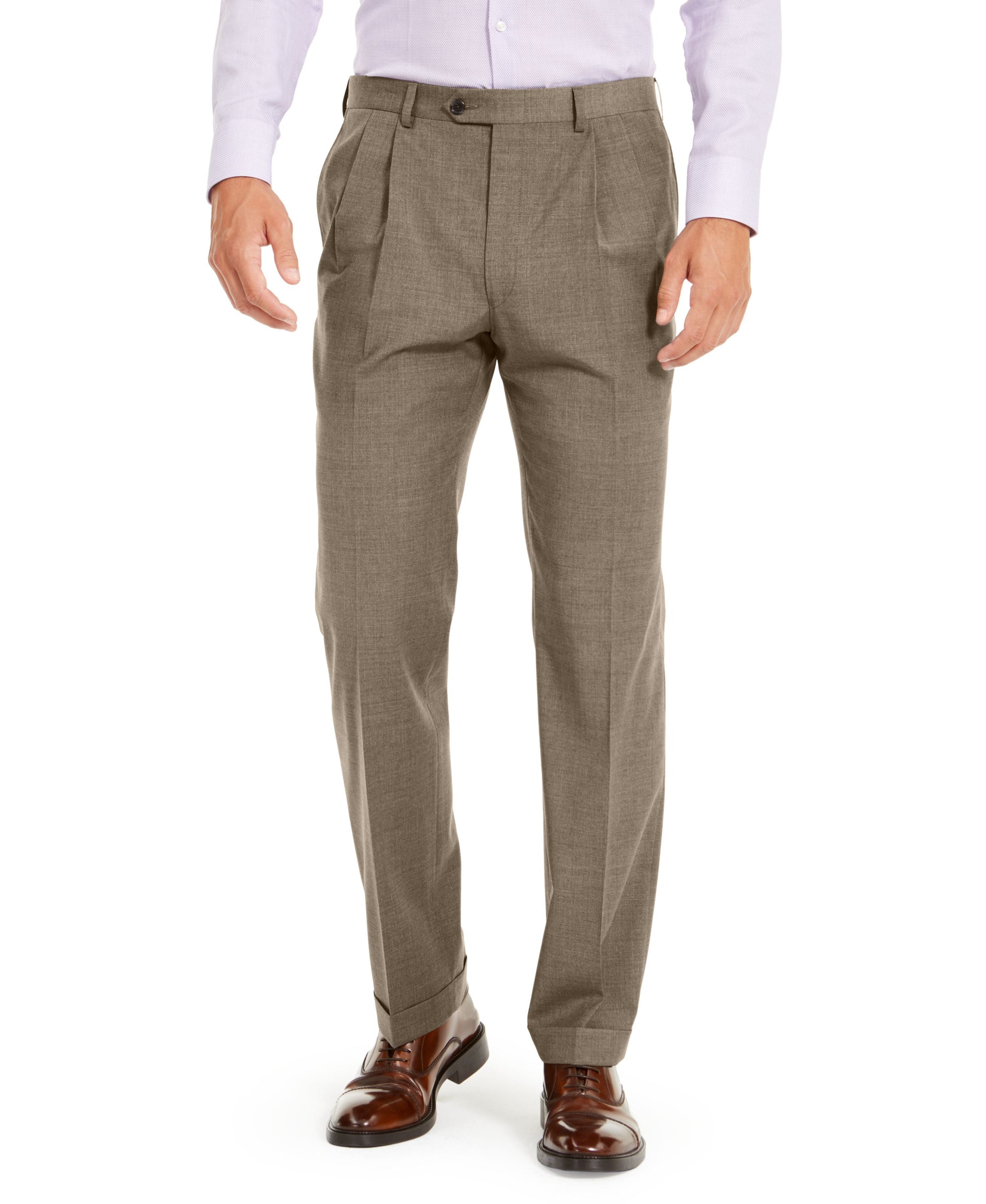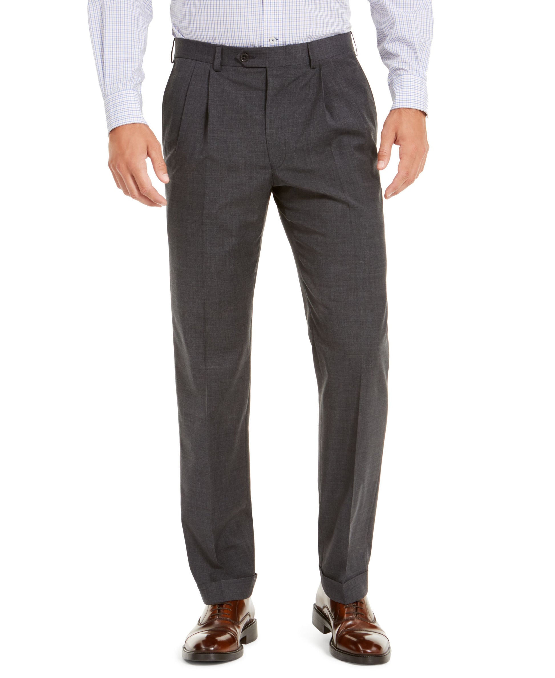 Men's Wool Blend Classic-Fit UltraFlex Stretch Double-Reverse Pleated Dress Pants