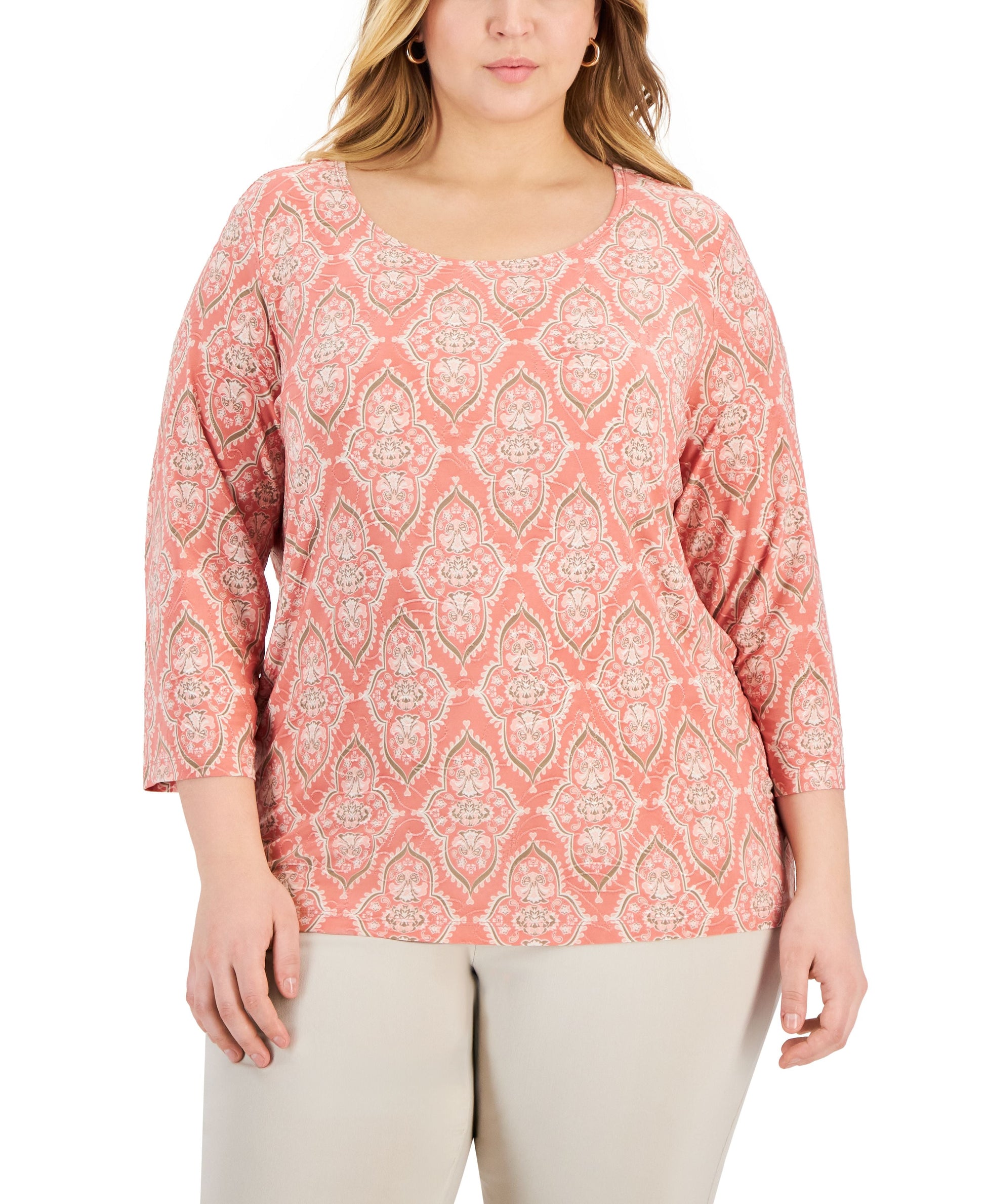 Plus Size Medallion Printed Jacquard Top Burnt Brick Combo 3X