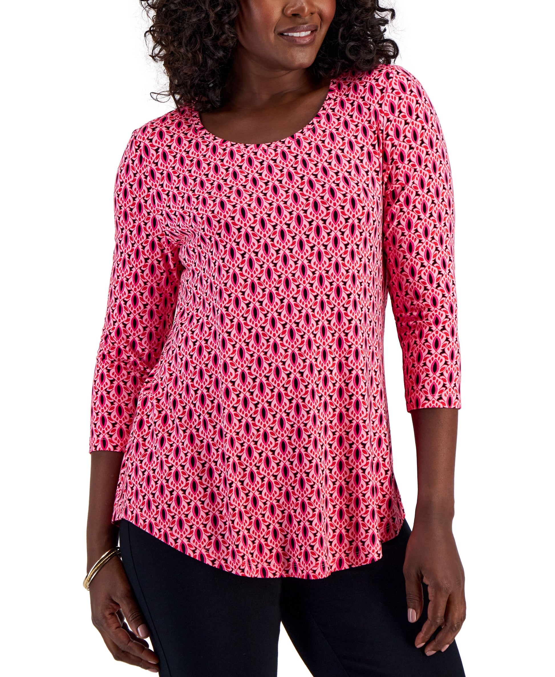 Women's Printed 3/4 Sleeve Scoop-Neck Top