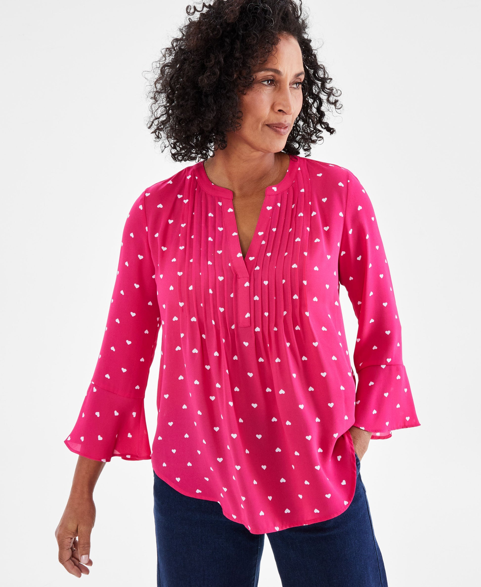 It's all in the details with this lovely top from Style & Co, featuring bell sleeves and neat pleats at its comfortably split neckline.