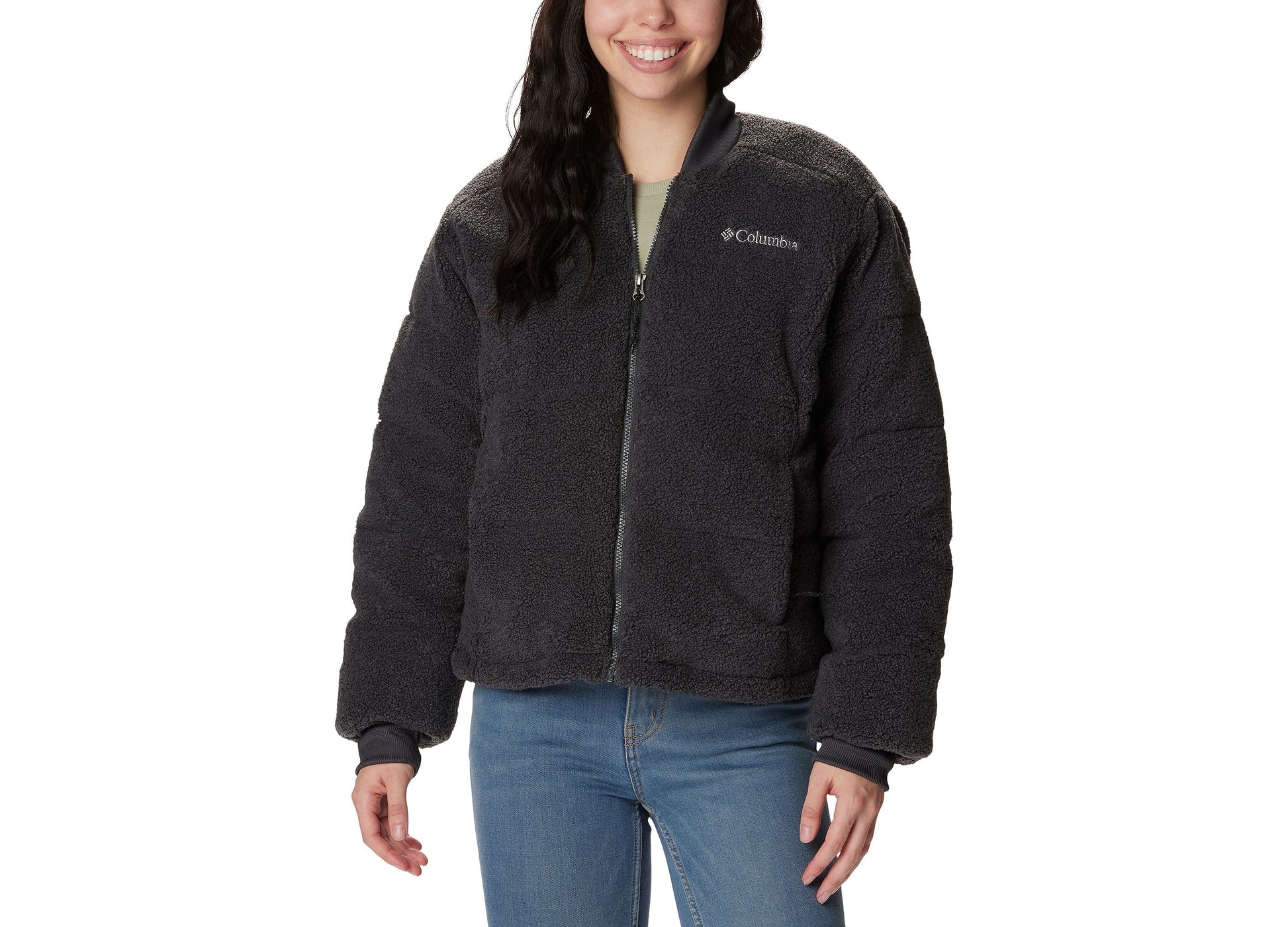 Get a cozy solution to winter, Columbia's water-resistant puffer has zippered hand pockets, a super soft chin guard, and is filled with down-like Thermarator Insulation.