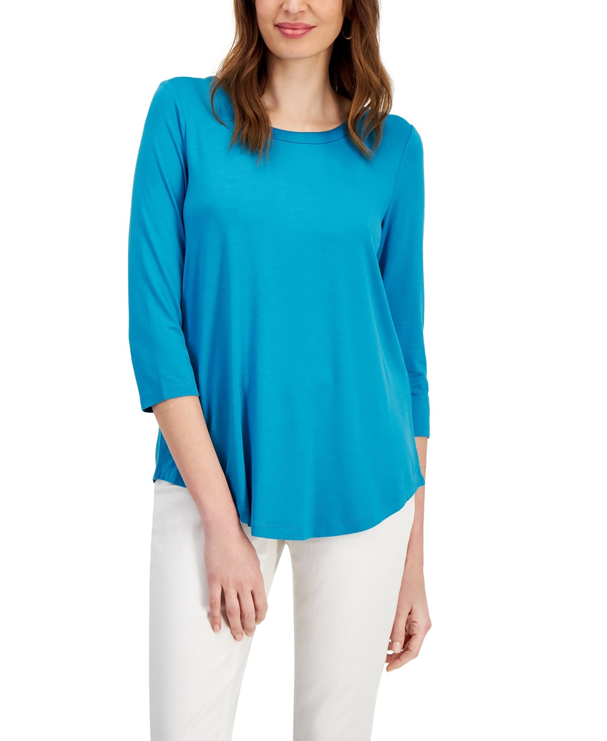 Women's Satin-Trim 3/4 Sleeve Knit Top Seafrost L